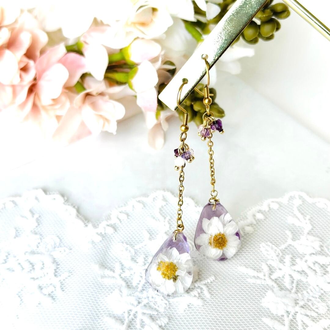 Flower pierce | 鉱石型レジンswingピアス 大人可愛い対応でどなたでも安心レジンピアス/レジンアクセサリー/ステンレスピアス