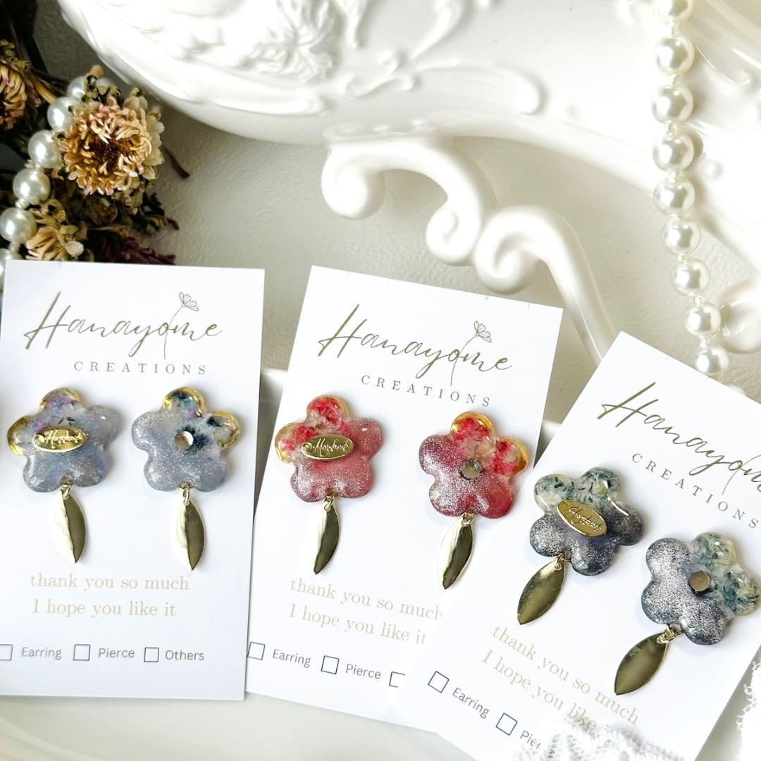 【金具変更可】|花型レジンピアス/イヤリング/レジンアクセサリー選べる金具/アレルギー対応